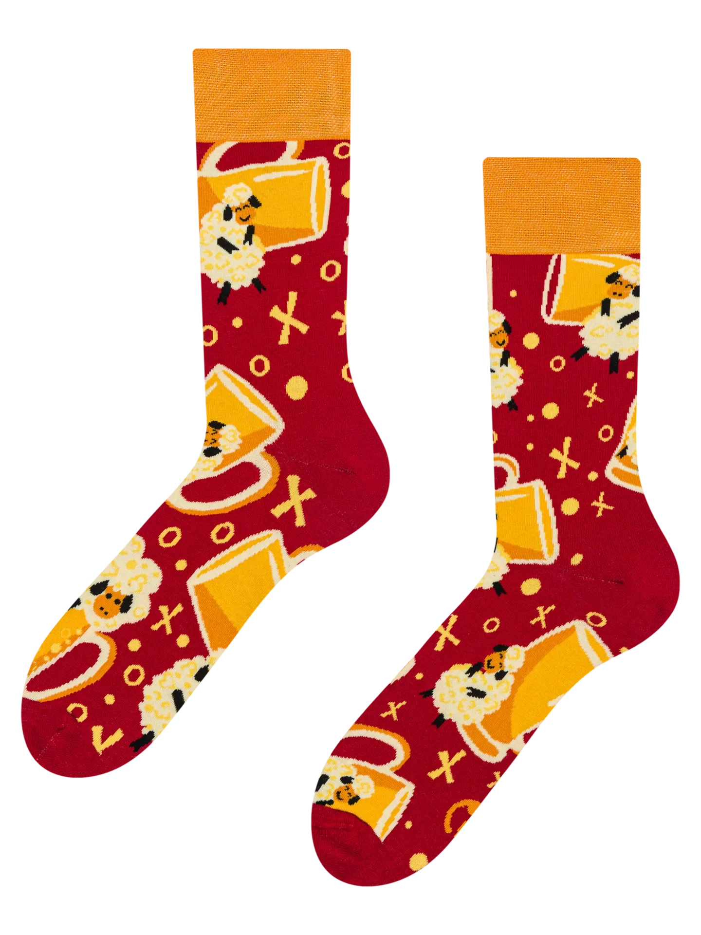 Te preguntas qué tienen la cerveza y las ovejas en común, ¿verdad? ¡Pues, bien, ambas puedes encontrarlas en nuestros calcetines alegres! Póntelos y reparte alegría a tu alrededor.