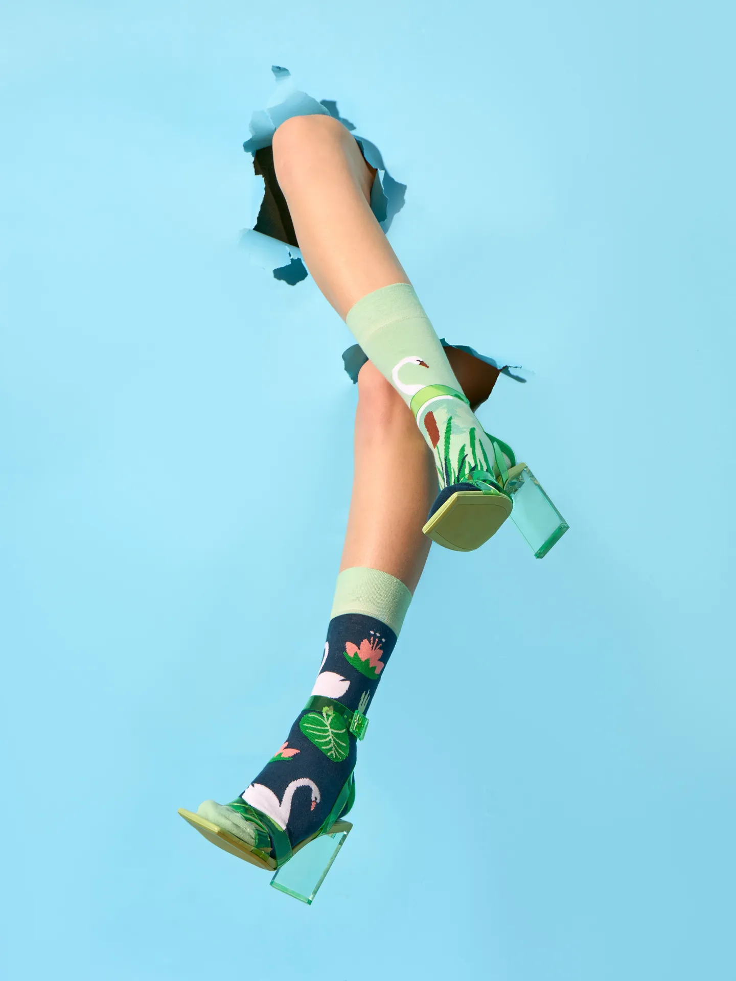 El cisne es símbolo de ternura e inocencia. Si tu también tienes un alma tierna, estos calcetines alegres de algodón de calidad no pueden faltar en tu armario.