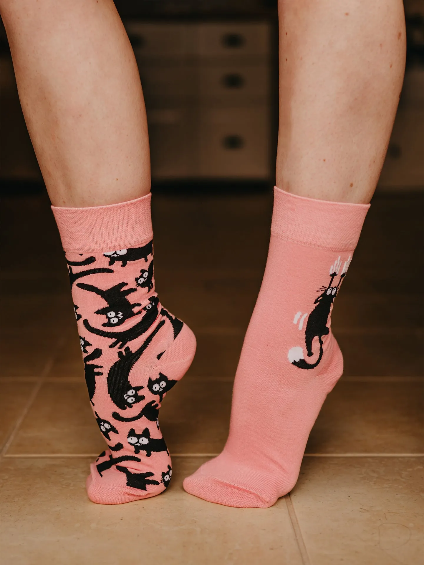Calcetines alegres Gatos rosas