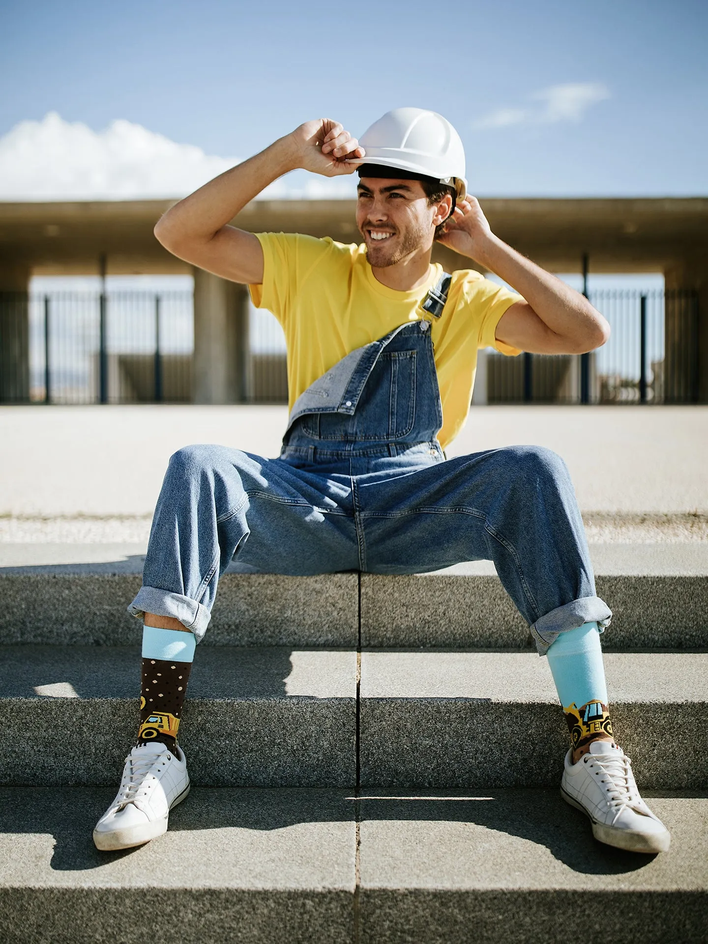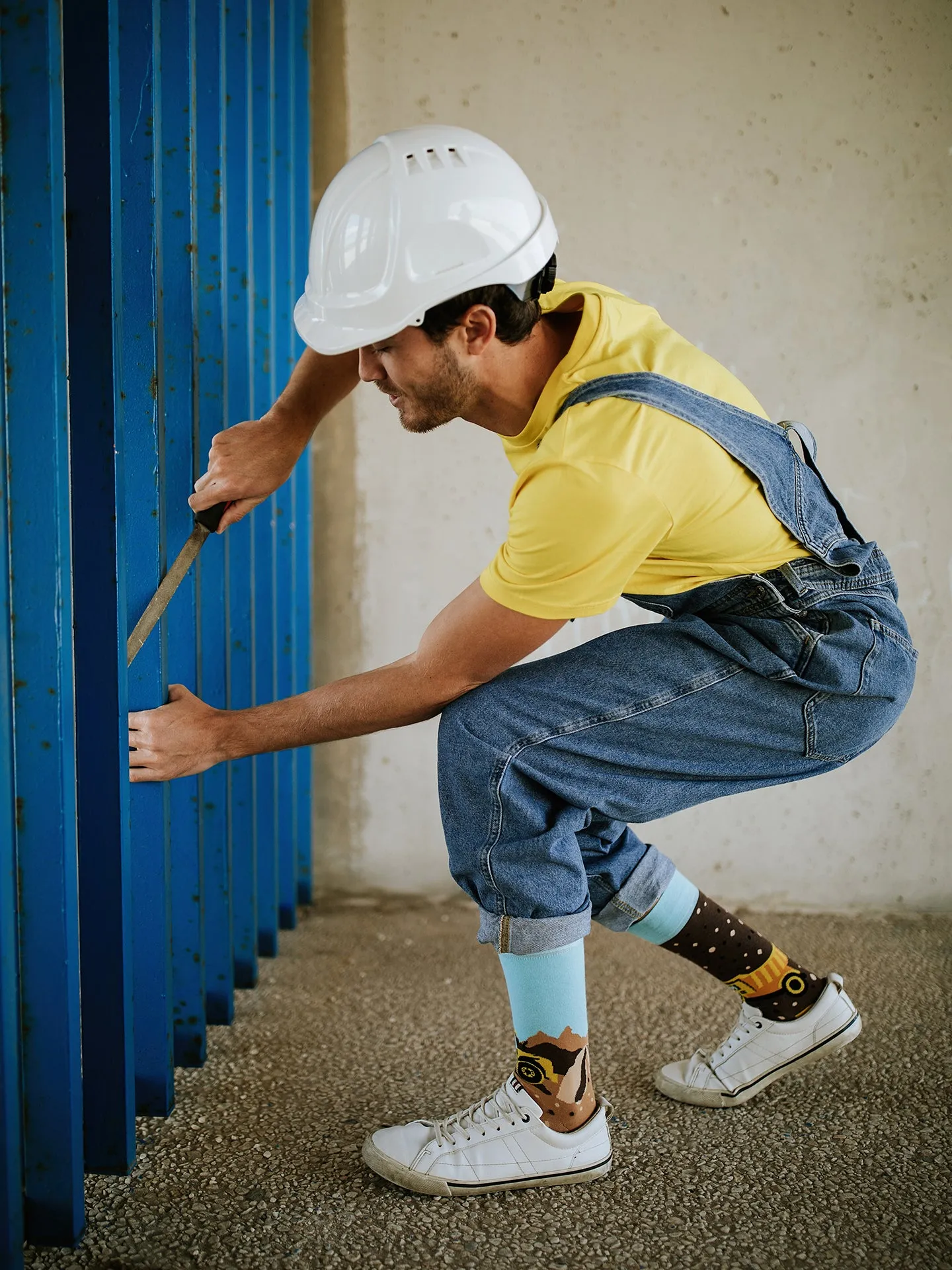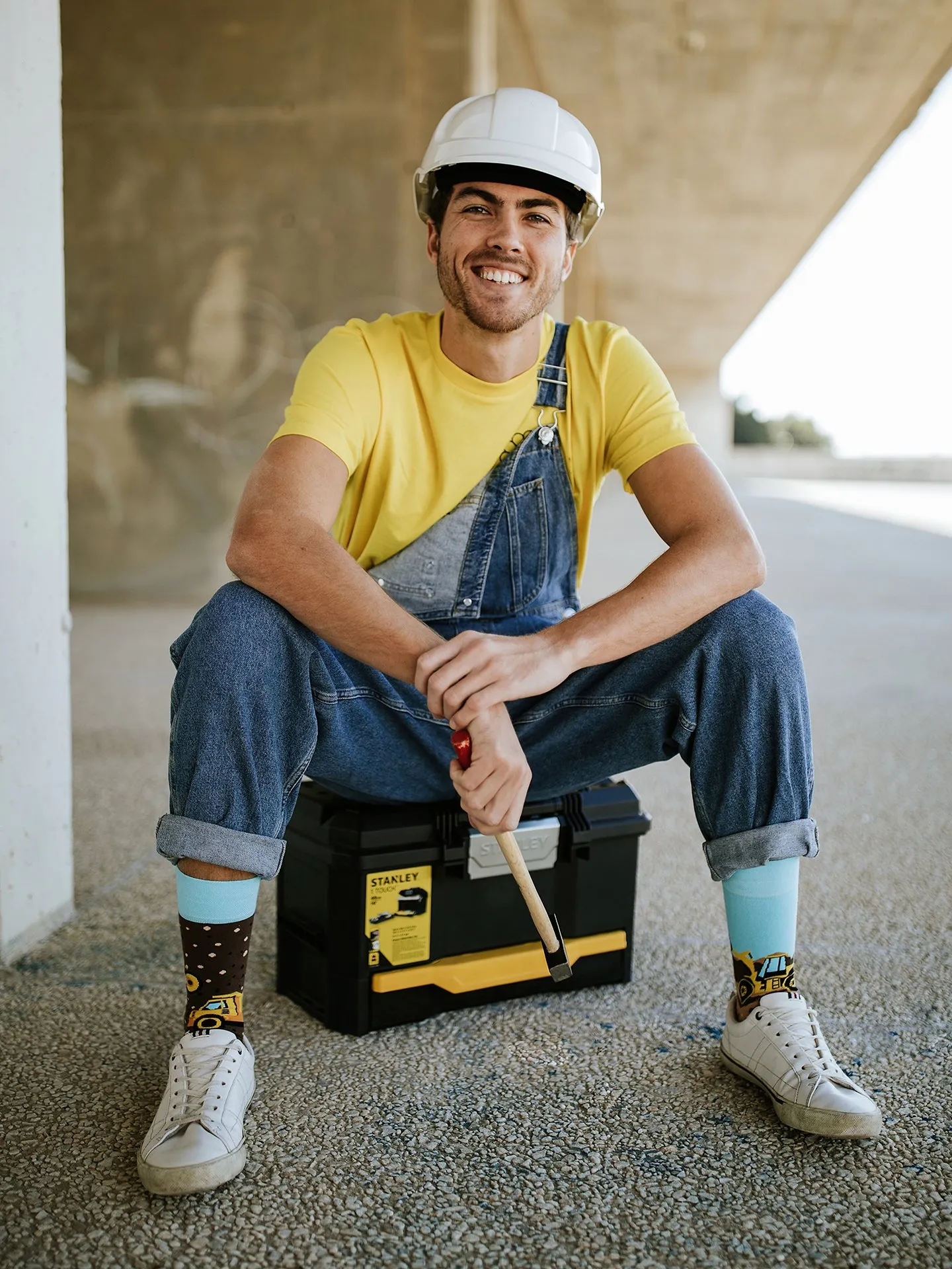 Trabajar con maquinaria pesada puede ser algo tedioso. En cambio, solo tardas unos segundos en ponerte unos calcetines alegres, algo tan rápido como sonreír.